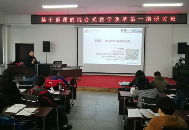 为提高教师的信息化教学能力,帮助教师积极开展线上线下相融合的混合式教学改革实践,配合我校在线开放课程建设及专业课引进慕课教学改革工程的实施,我校于??2-13日举办“基于慕课的混合式教学改革第一期研讨班”。本次研讨班由上海交通大学慕课研究院和MOOC联盟上海培训中心联合主办,我校承办,来自上海、吉林、黑龙江的十余所高校?00余名教师参加,其中我?0余名教师参加了会议,涉及专业课引进慕课教学改革课程负责人及教学团队成员、网络课授课教师、慕课授课教师等?/span>